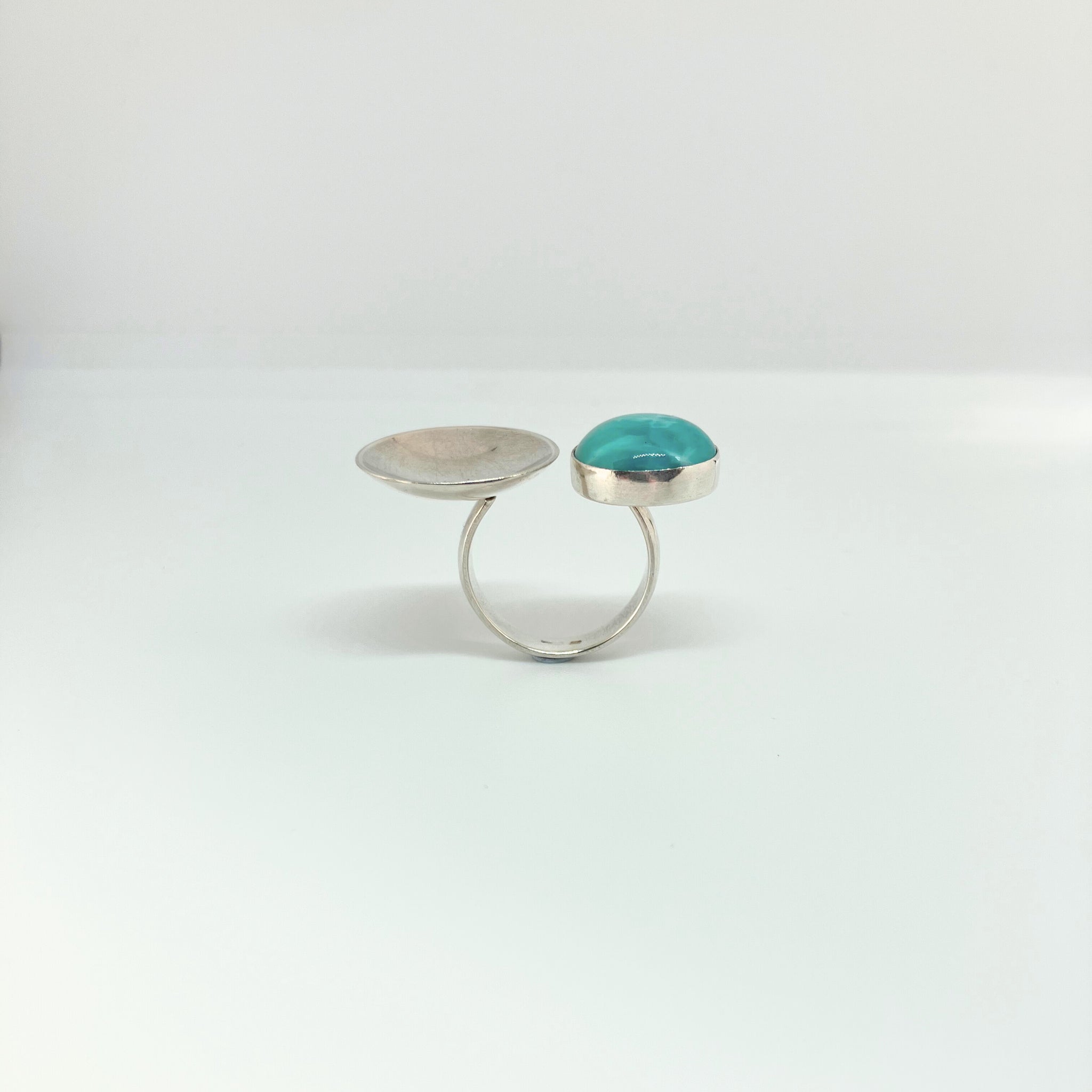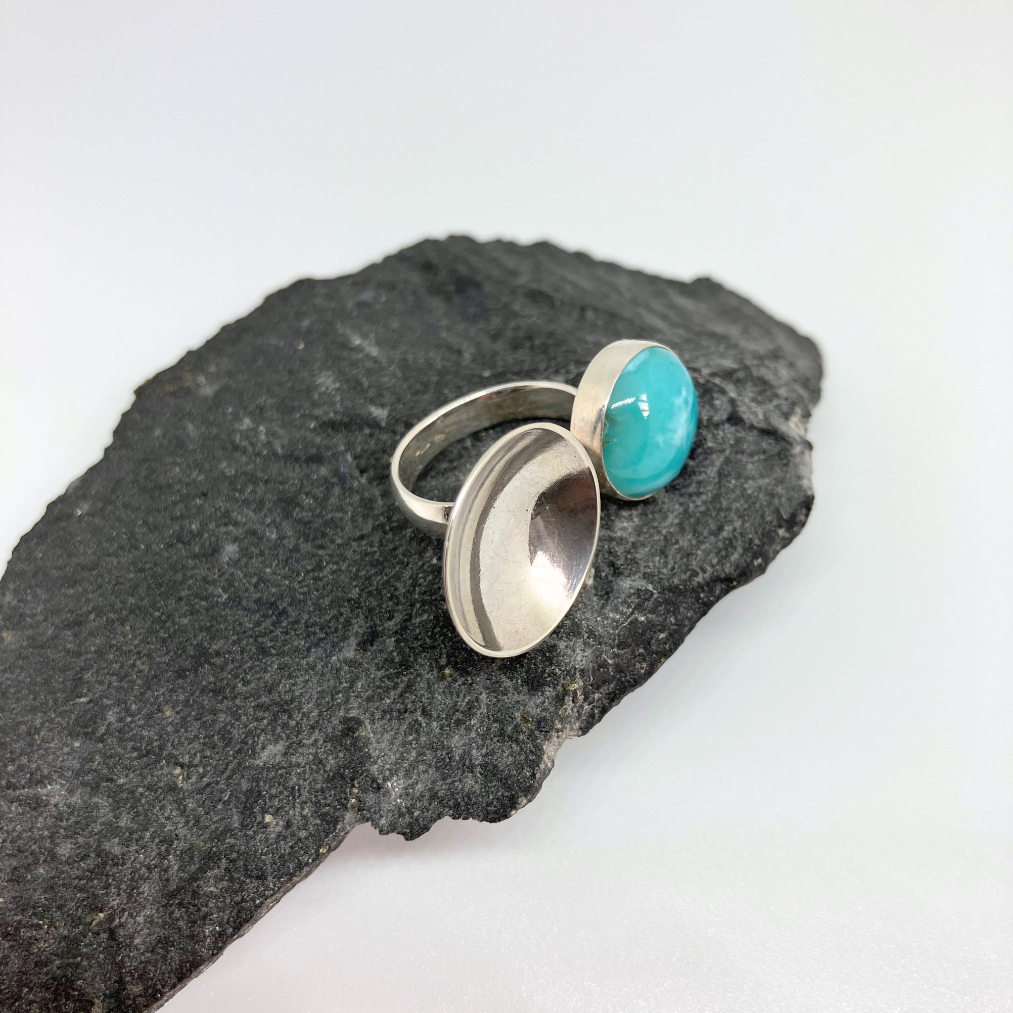 Elegantly bohemian, minimal open silver ring with beautiful larimar.